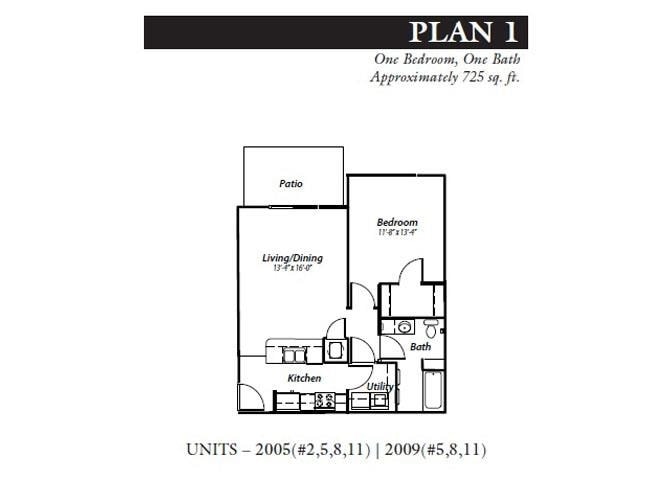 Apartment Model: 1 bed 1 bath Plan 11 Bedroom, 1 Bath, 725 sq ftUnavailable![]()