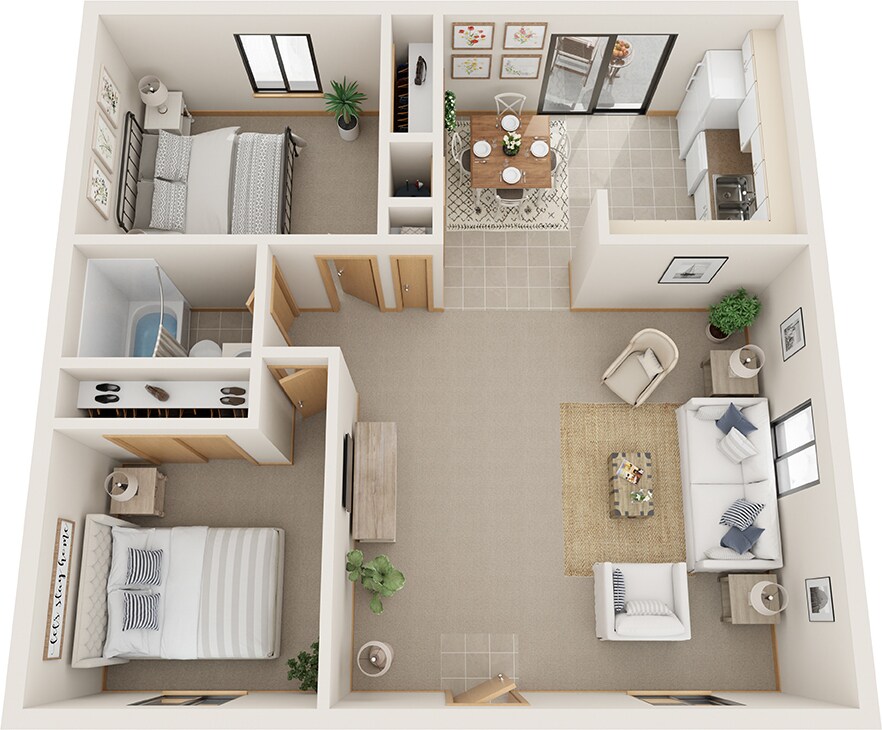 3 Beds, 2 Baths, 893 sq ftModel Gallery