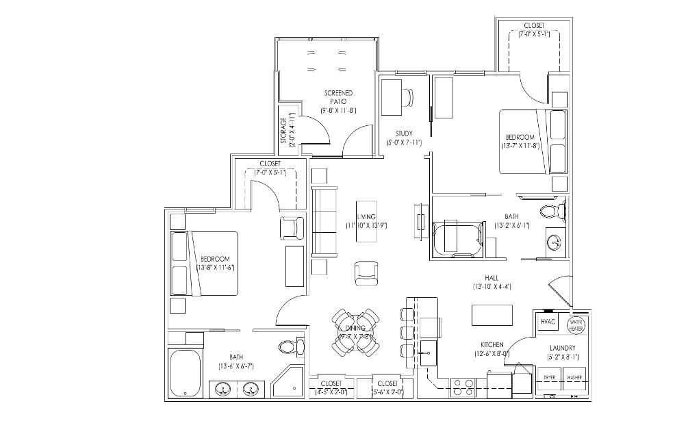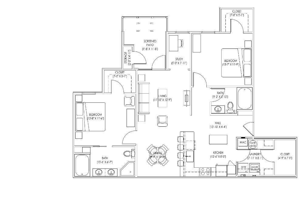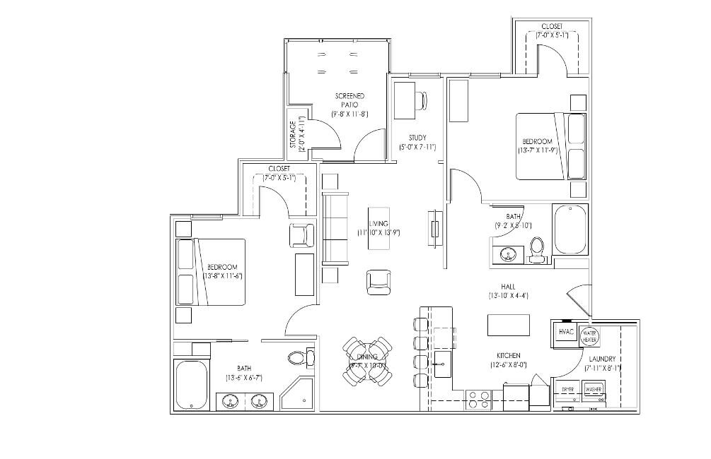 Apartment Model: 1st FloorFrom $1,4101 Bedroom, 1 Bath, 820 sq ftAvailable Now![]()