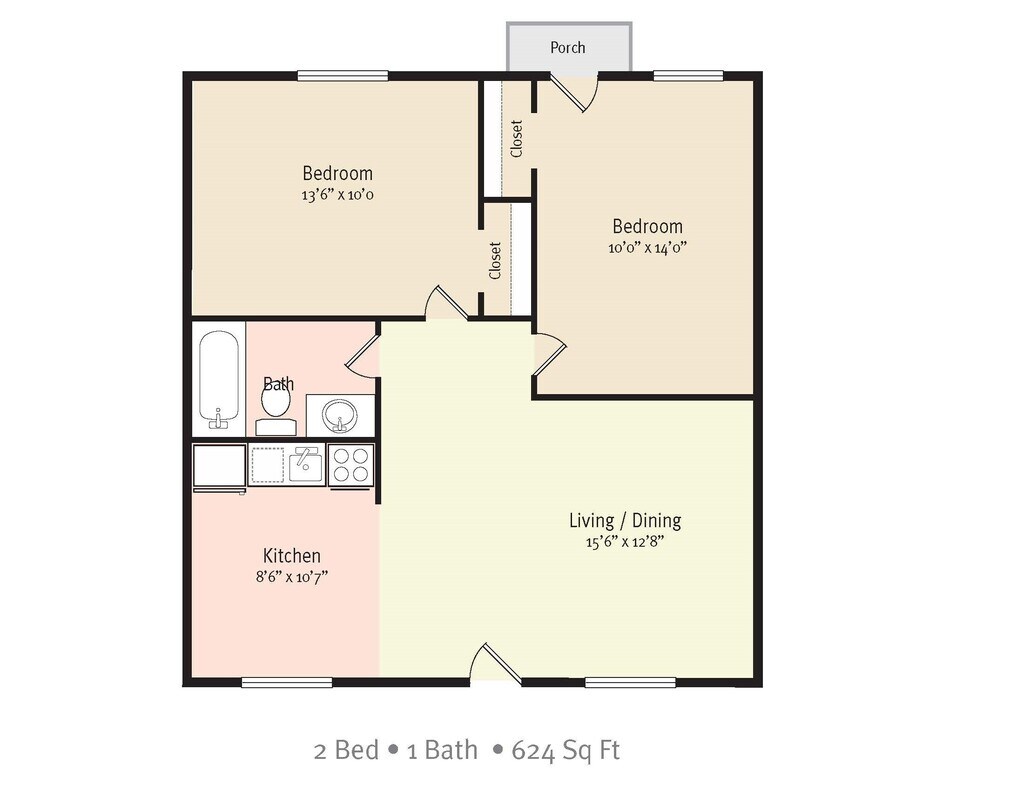 2 Beds, 1 Bath, 624 sq ftAvailable NowModel Gallery