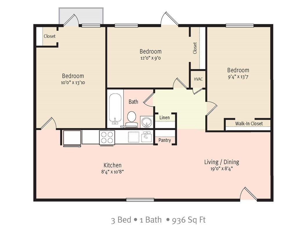 3 Beds, 1 Bath, 936 sq ftModel Gallery