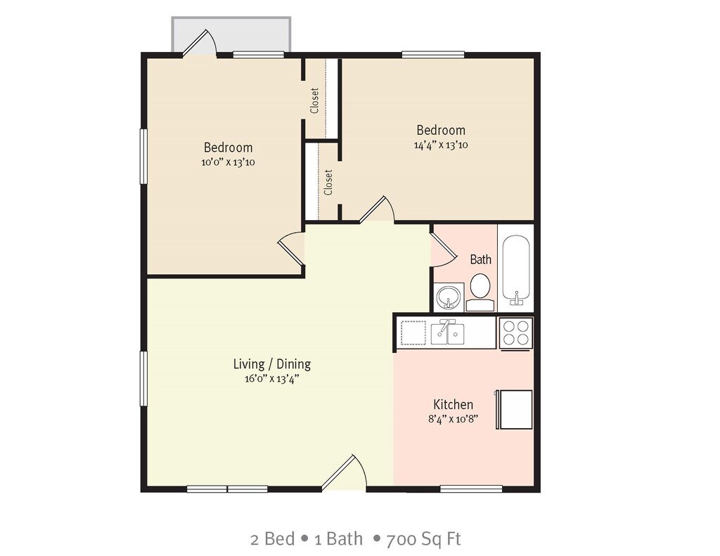 2 Beds, 1 Bath, 700 sq ftAvailable NowModel Gallery