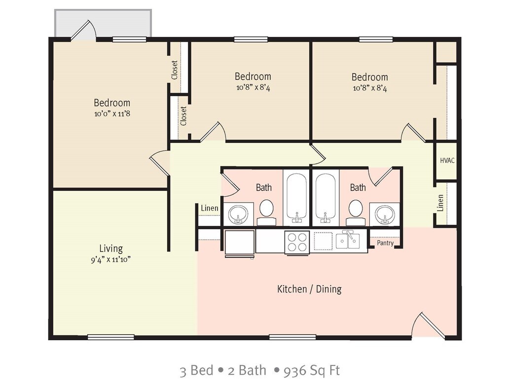3 Beds, 2 Baths, 936 sq ftModel Gallery