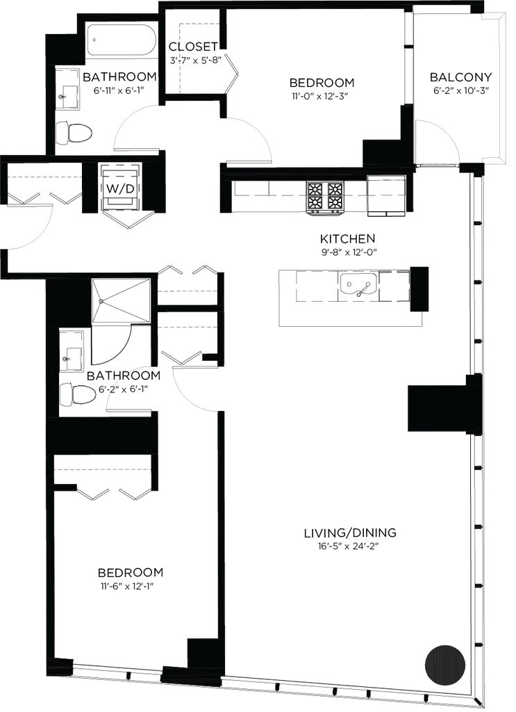 1c - Floorplan 1 Apartment Unit: 1-2702Apartment Model: 1cFrom $3,3391 Bedroom, 1 Bath, 742 sq ftAvailable NowFloorplan 1f