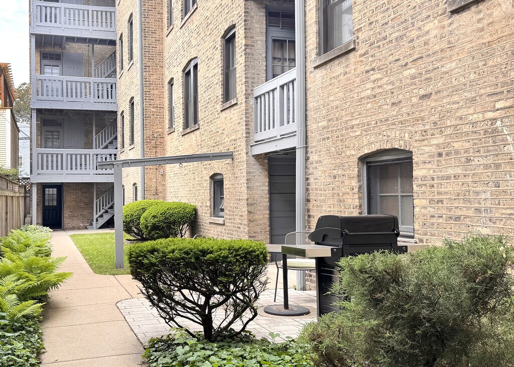 Roscoe Village - 1 bedroom, 1 bath apartment with hardwood throughout. Heat & water included a 5-minute walk to Paulina Brown Line & Roscoe Street shopping & hospitality. Whole Foods, Target, Trader Joe's, Mariano's and Jewel/Osco. This 2nd floor unit has hardwood floors, aluminum double pane windows with cordless mini blinds, and a well-maintained owner managed building. It features tons of light, ceiling fans, great closet space, super clean, secure entrance, intercom buzzer system, and gated rear entry. Shared restful patio with gas grill in rear. Laundry room on-site, coin operated, 2 washers, 2 dryers. Snow removal, landscaping, and scavenger services. Private storage locker inside at ground level for each unit. One month and a half security deposit is required. Ample street parking, bicycle room. Heat is included. Tenant pays electric & cooking gas. No pets allowed. Smoke free building. Please email for tour.
