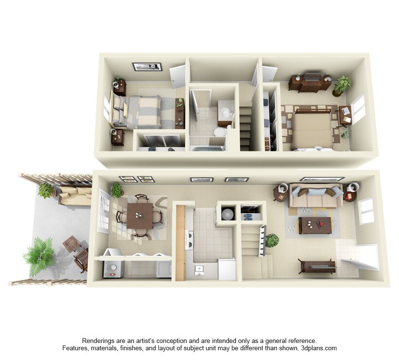 2 Beds, 1 Bath, 1050 sq ftAvailable NowModel Gallery