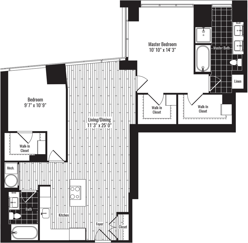N A11 - Floorplan 1 Apartment Unit: 0430Apartment Model: N A11$2,1701 Bedroom, 1 Bath, 763 sq ftAvailable NowN A10