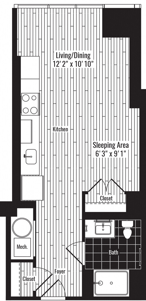 Studio, 1 Bath, 530 sq ftAvailable January 14, 2026Model Gallery