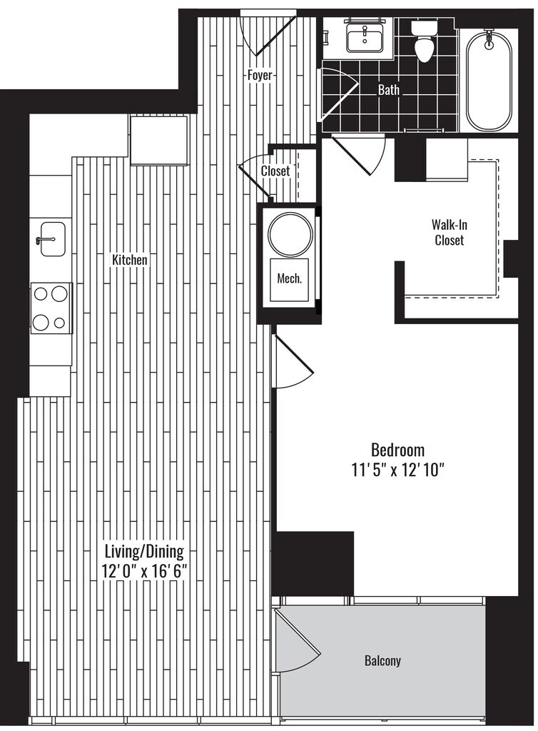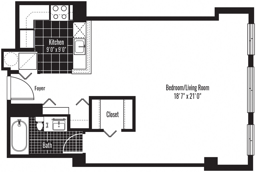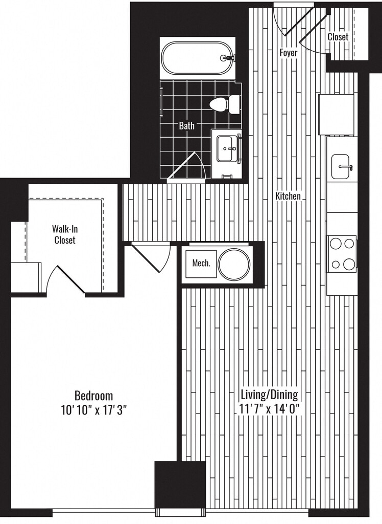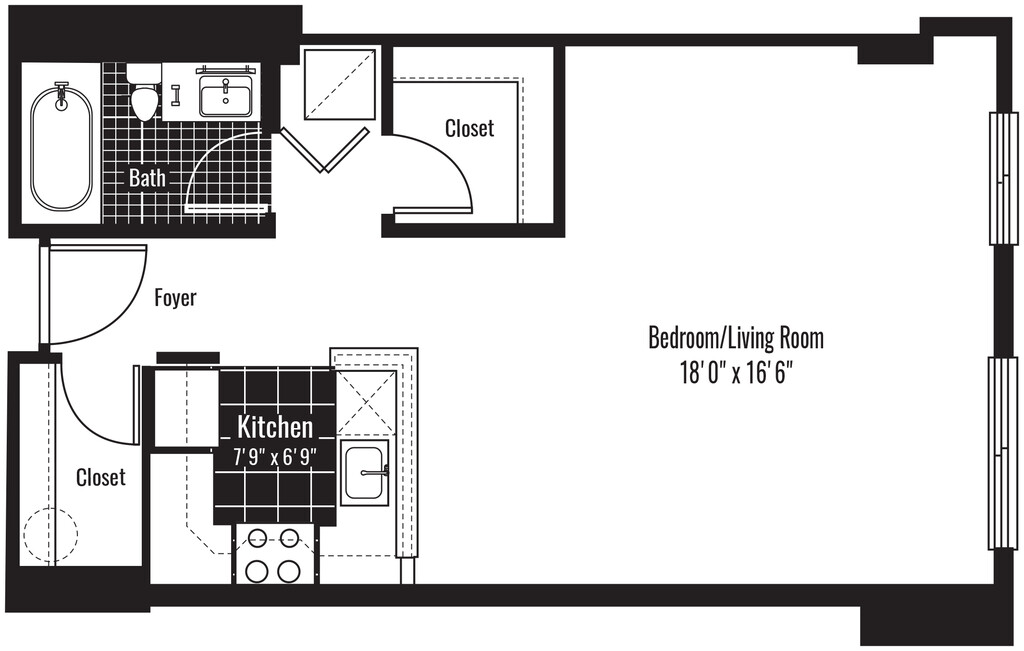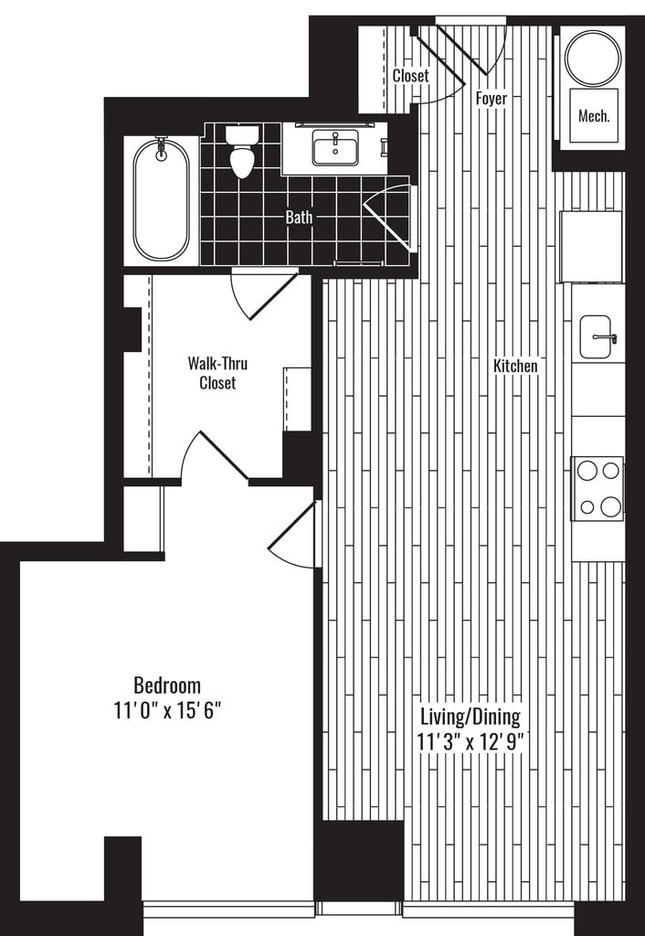 Studio, 1 Bath, 610 sq ftLargest StudioThis is the largest Studio at this PropertyModel Gallery