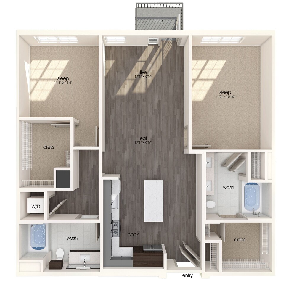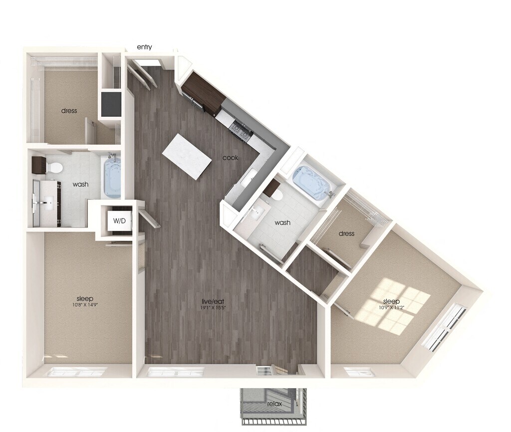 A04 - Floorplan 1 Apartment Unit: 413Apartment Model: A04$2,5051 Bedroom, 1 Bath, 779 sq ftAvailable December 5, 20252 Bedrooms