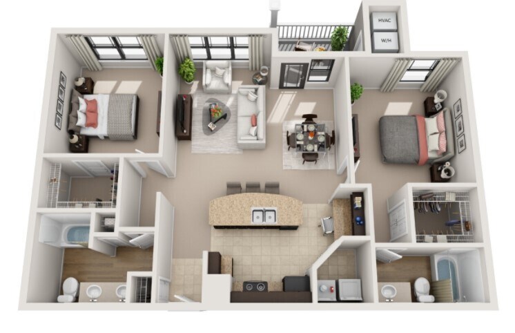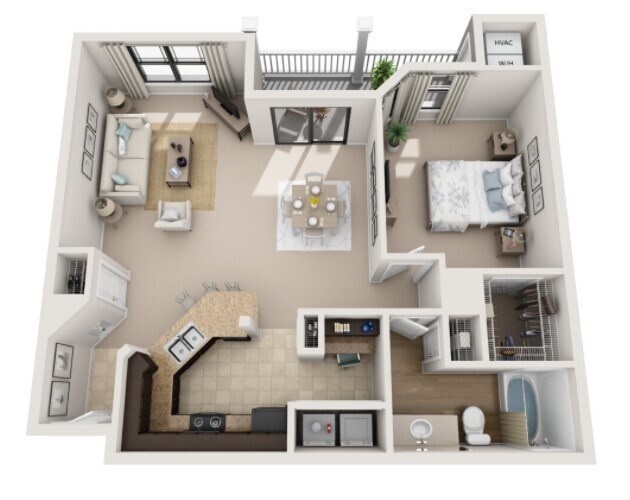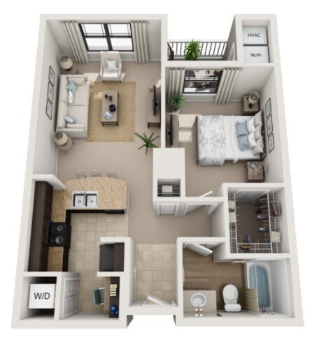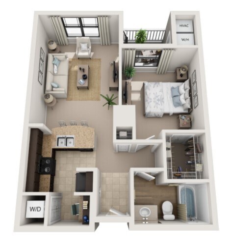 Apartment Model: FernFrom $1,1231 Bedroom, 1 Bath, 788 sq ftAvailable Now![]()