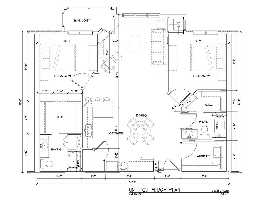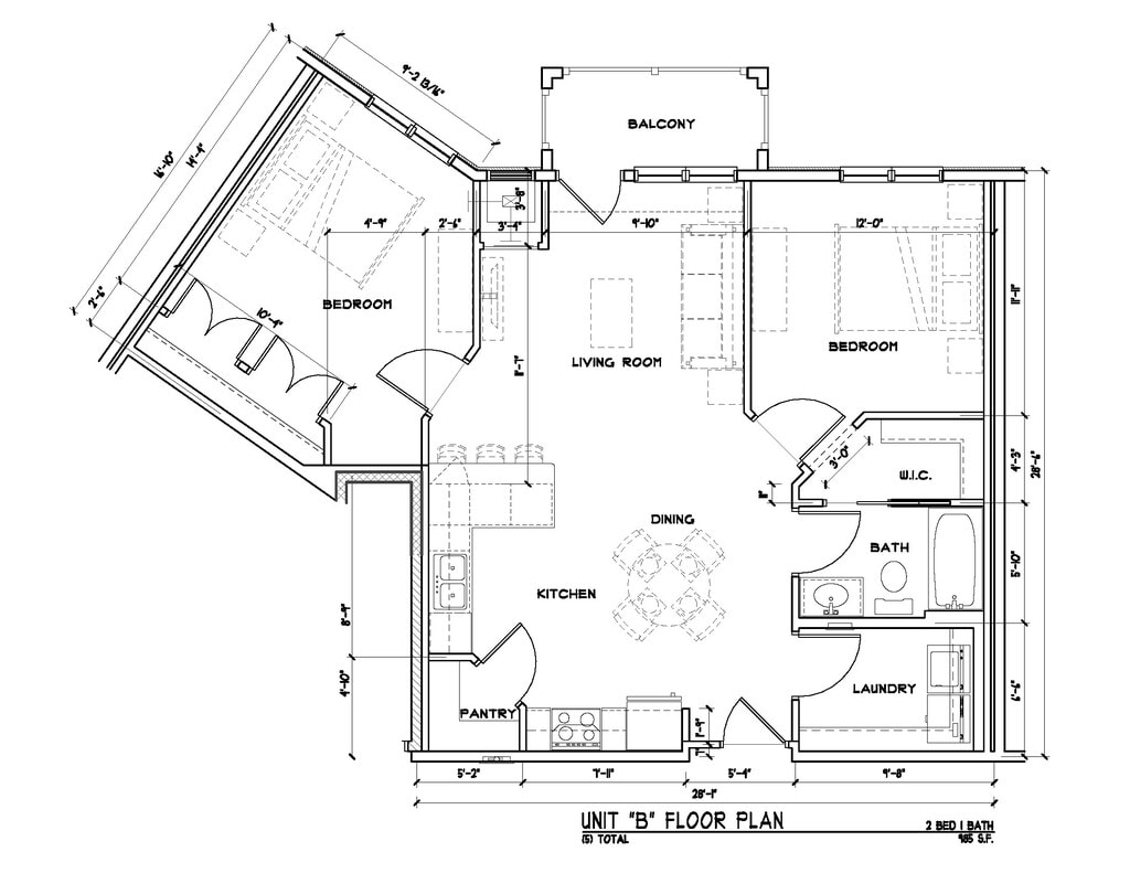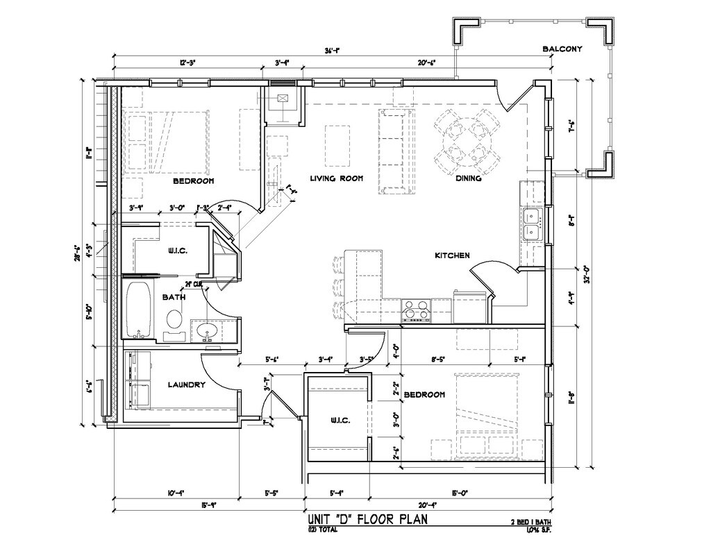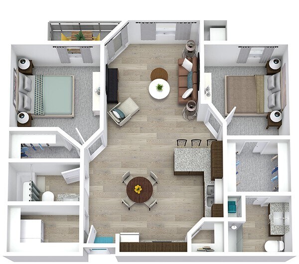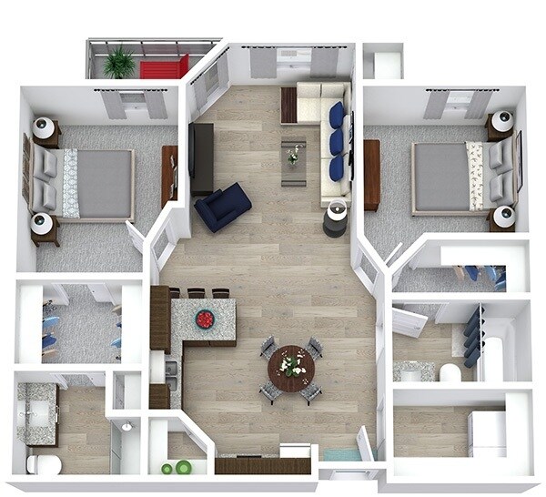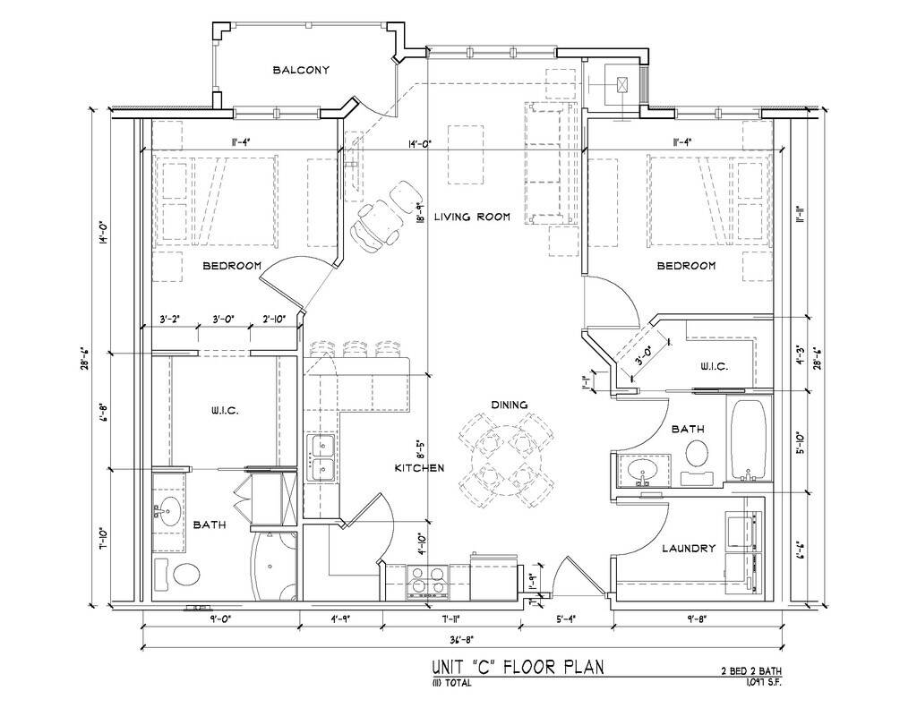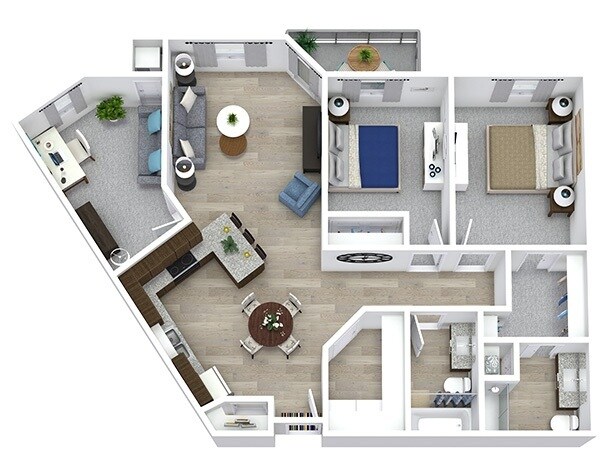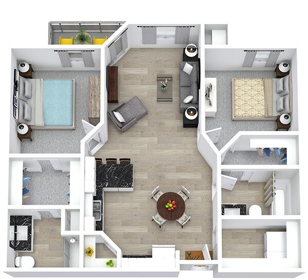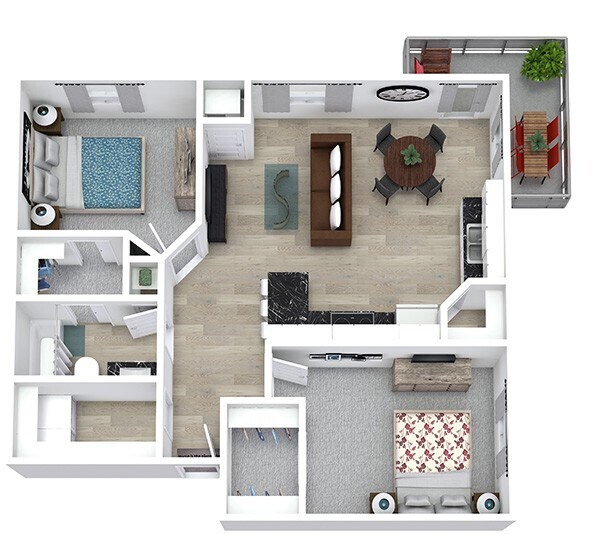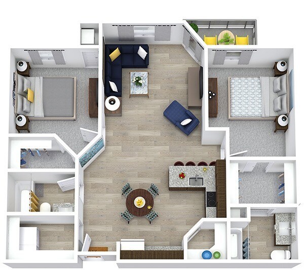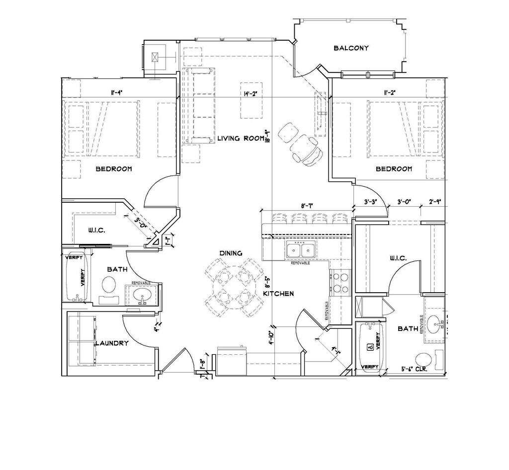 1 Bedroom 1 Bath - Floorplan 4 2 Bedrooms