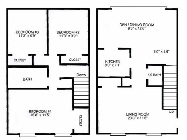 Apartment Model: 3A Townhouse$1,1303 Bedroom, 1.5 Bath, 1100-1150 sq ftAvailable Now![]()