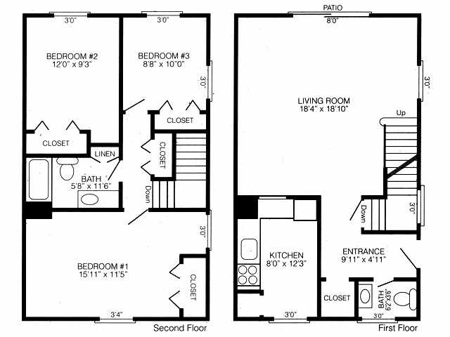 2BR Townhouse - Floorplan 1 3 Bedrooms