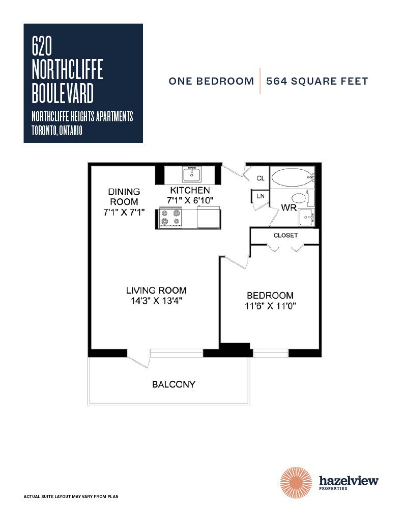 Northcliffe Heights Welcome home to Northcliffe Heights in the Caledonia-Fairbank neighbourhood. You're located within walking distance of grocery stores, restaurants, shops and boutiques, and a public library on nearby Eglinton Avenue West. Fairbank Memorial Park – home to a community recreation centre and outdoor pool – is practically in your 'backyard'. There are several schools only steps away. The TTC is close to home and Eglinton West station is nearby – making all of Toronto easily accessible. Your renovated, pet-friendly rental apartment features gleaming parquet floors, ceramic tile, new appliances, and ample living and storage space. Laundry facilities are conveniently located on-site. Our friendly on-site management team will handle any maintenance issues in the building or in your suite. You never need to worry about parking – there is visitor parking for your guests and assigned parking available for you. Northcliffe Heights is a Certified Rental Building. Come home to the comfort and convenience of Northcliffe Heights (620 Northcliffe Blvd.)