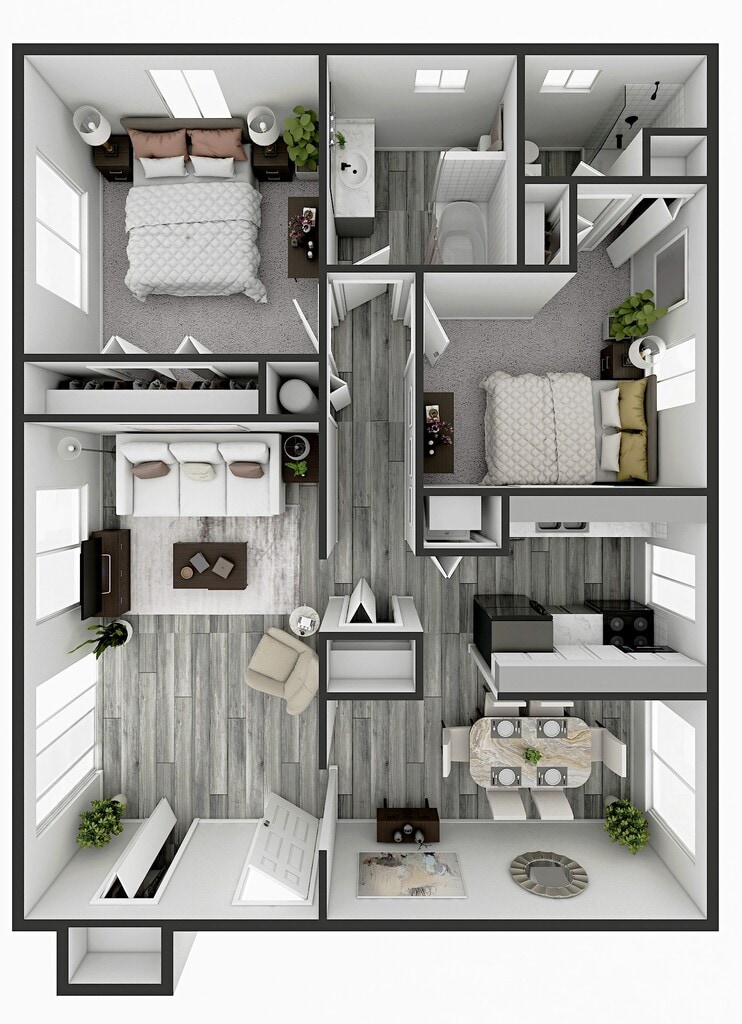 2 Beds, 2 Baths, 1100 sq ftAvailable NowLargest 2 BedroomThis is the largest 2 Bedroom at this PropertyModel Gallery
