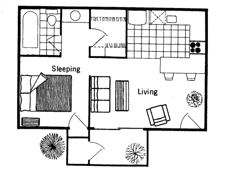 Apartment Model: Plan AStudio, 1 Bath, 420 sq ftUnavailable![]()