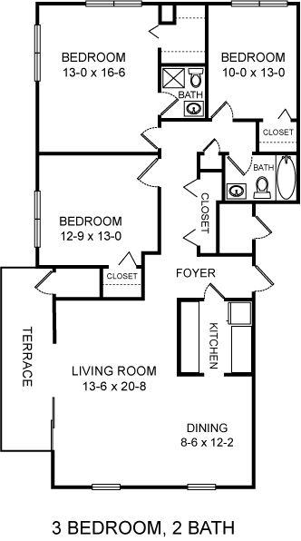 Apartment Unit: C203Apartment Model: 3 BR$2,4953 Bedroom, 2 Bath, sq ftAvailable Now![]()