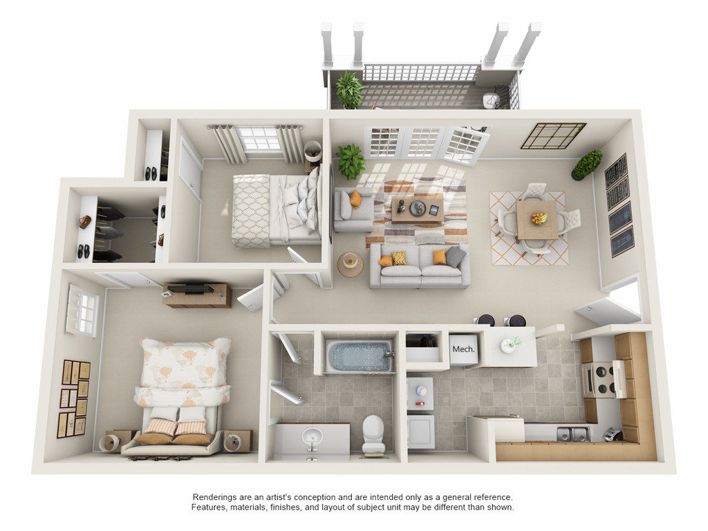 2 Beds, 1 Bath, 850 sq ftAvailable NowModel Gallery
