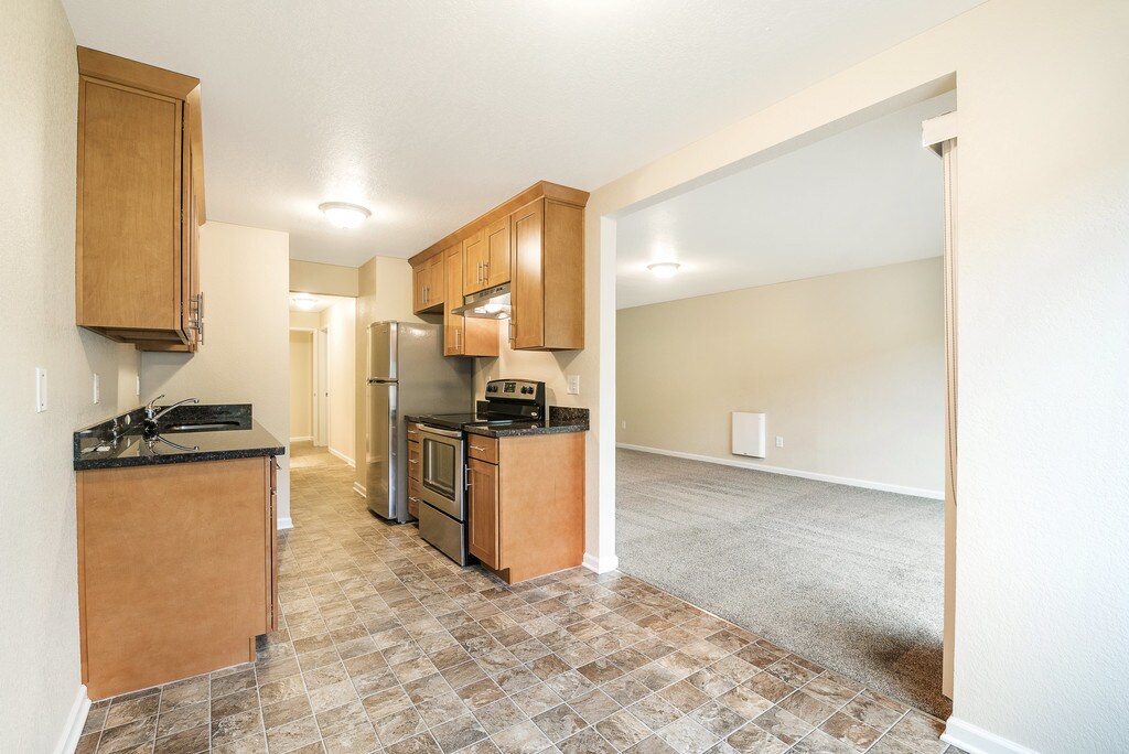Secured entry building 1 BLOCK FROM NORTH GATE MALL and right across from Hubbard Homestead Park. This property, located steps right on the bus line (no street noise!) boasts spacious layouts with IN UNIT WASHER DRYERS! Just remodeled with gorgeous kitchen finishes, granite counters/stainless steel appliances, updated kitchen/bath cabinets, light fixtures, doors/mill work, tile floors, newer carpet, fresh paint, and massive bedrooms. Residents enjoy the serenity of a small building, semi-private patio and off street parking available for rent. *** Apply same day you see the apartment and get 2 WEEKS FREE RENT!!! *** $250 Holding Deposit required to reserve apartment, later applied toward total deposit of $1000. $50/person for Water Sewer Garbage. Parking available for $50 - $100/mo.