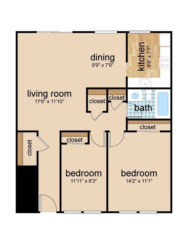 - 2 Bedrooms- Two Bedroom Upstairs- From $1,8102 Beds, 1 Bath, 975 sq ftAvailable Now- Model Gallery- Floorplans- Availability Details- Price - Availability Date - Unit - Sq Ft - Deposit - View Details - $1,825/person - Available Now - 1-006 - 975 - $150 - $1,810/person - Available Now - 1-010 - 975 - $150 - $1,825/person - Available Now - 2-028 - 975 - $150 - Model Amenities and Features- Features- Air Conditioning