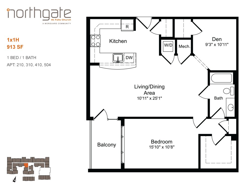 1x1E - Floorplan 1 1x1D