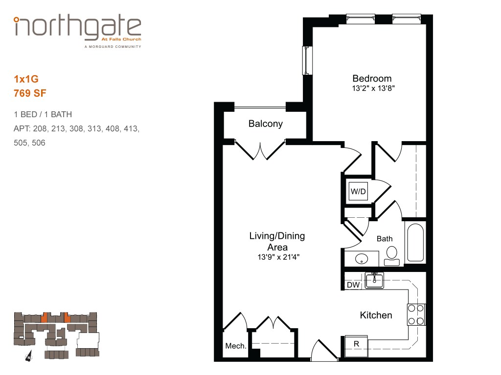 1x1G - Floorplan 1 Apartment Unit: 505Apartment Model: 1x1GFrom $2,4061 Bedroom, 1 Bath, 769 sq ftAvailable November 30, 20251x1B