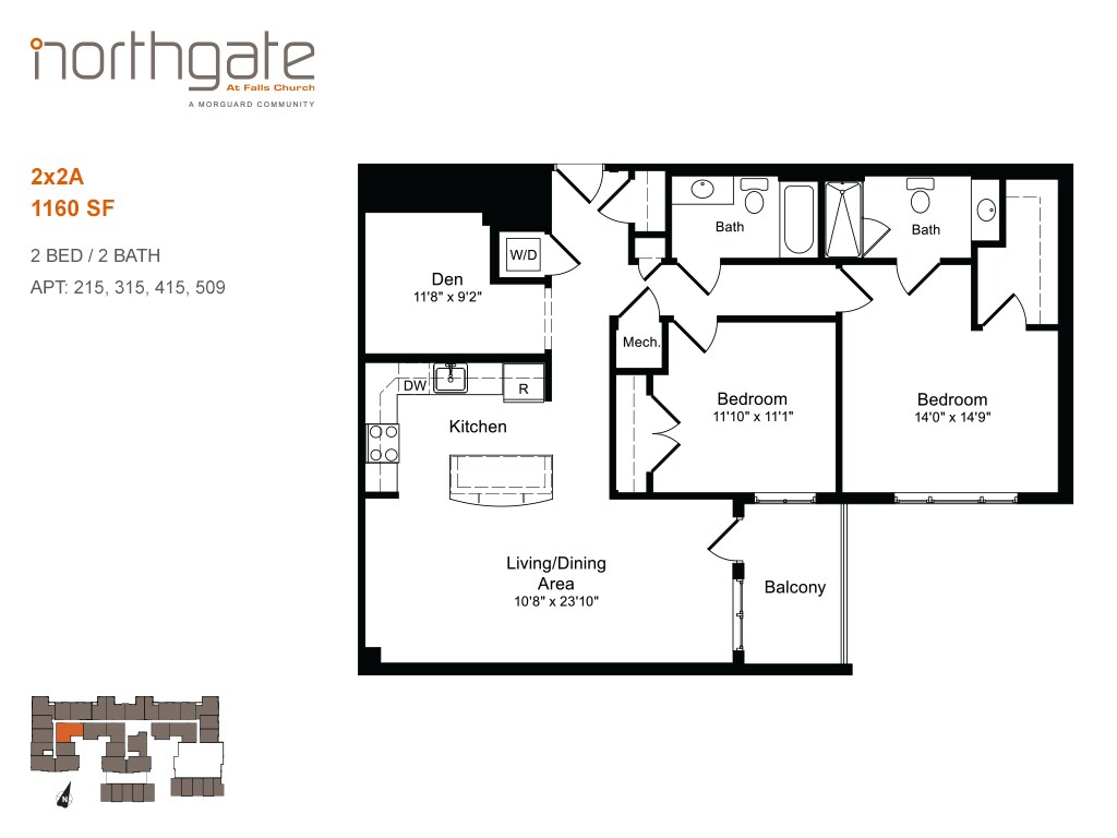 Northgate at Falls Church offers 1 to 2 Bedroom apartments starting from $2,155 and having 619–1,545 sq ft. Here is the current pricing and availability: