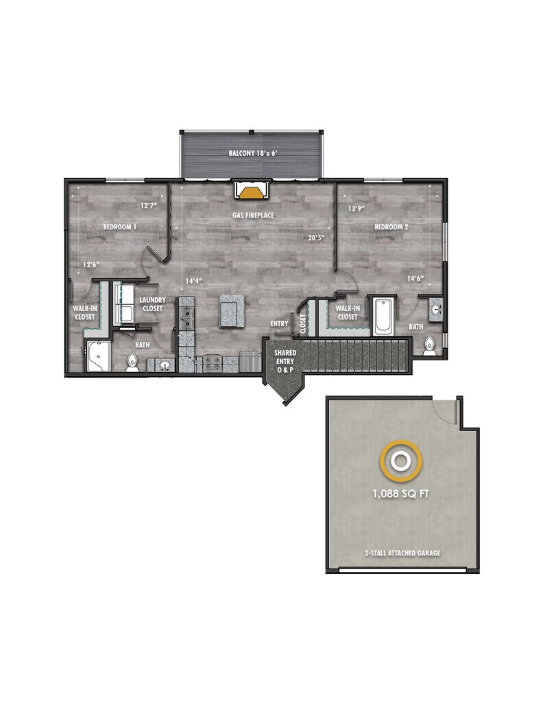 1 Bed, 1 Bath, 625 sq ftModel Gallery
