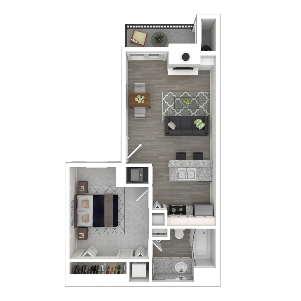 1 Bed, 1 Bath, 734 sq ftAvailable NowModel Gallery