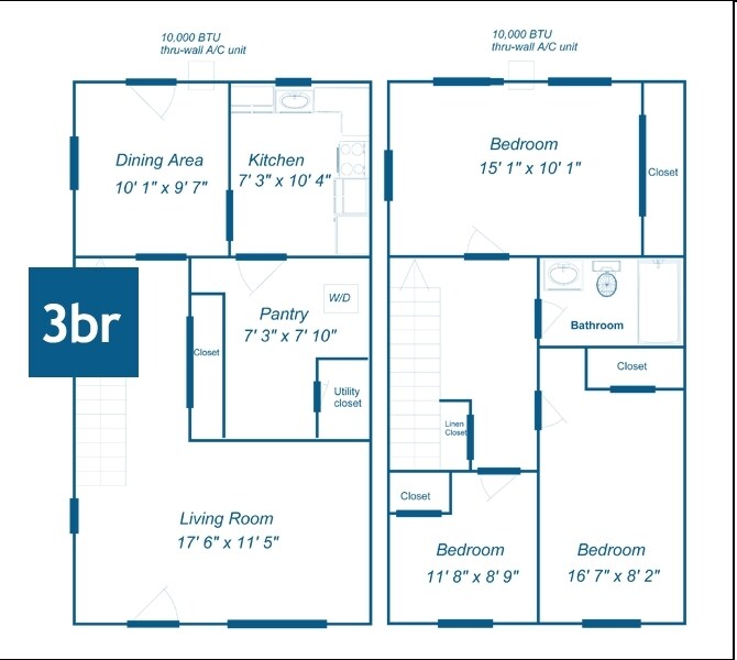 3BR/1BA - Floorplan 1 3BR/1.5BA