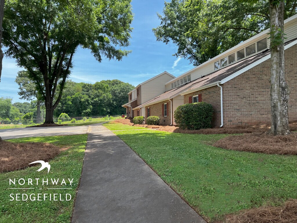 The current rent special at Northway at Sedgefield is: LEASING NOW~~Discover Northway at Sedgefield! Our newly renovated 2-bedroom, 1.5-bath townhomes offer the perfect blend of comfort and style. Nestled 45 miles west of Charlotte, our pet-friendly community in charming Shelby features: - Spacious living areas - Gleaming hardwood floors on the 1st floor - Cozy carpeted bedrooms upstairs - Central air/heat - Community pool - In-unit washer and dryer hookups - Onsite laundry facilities Enjoy easy access to Charlotte Douglas International Airport while savoring a small-town atmosphere. Take a short walk to the nearby park with picnic areas and a playground, or a quick drive to uptown Shelby for local dining, pubs, and shopping. Come tour Northway at Sedgefield today and let us welcome you home!.