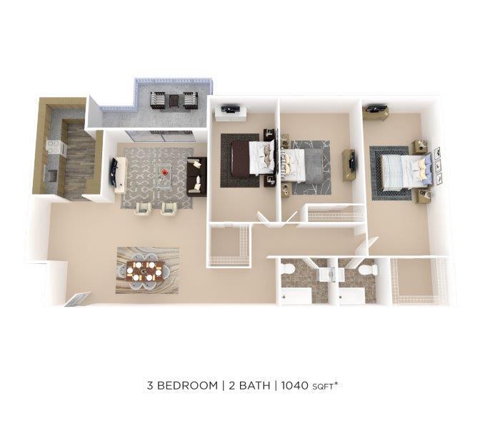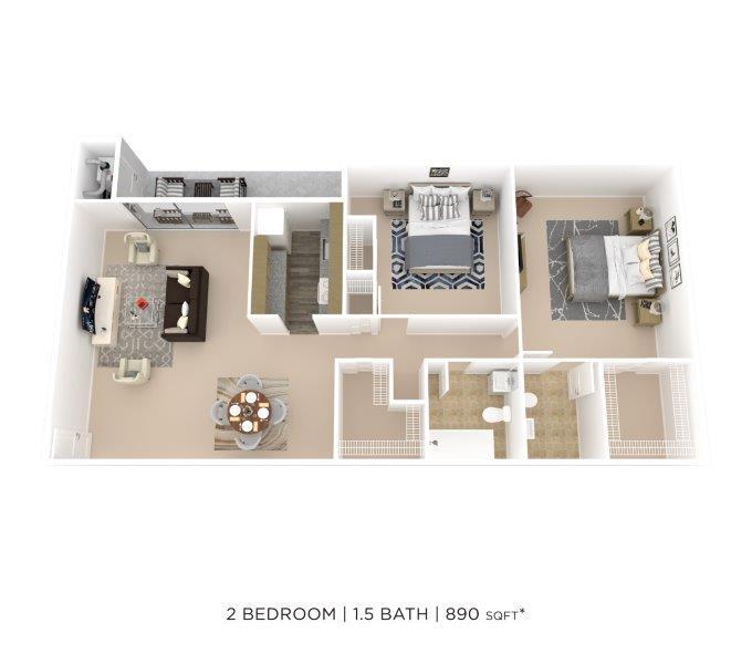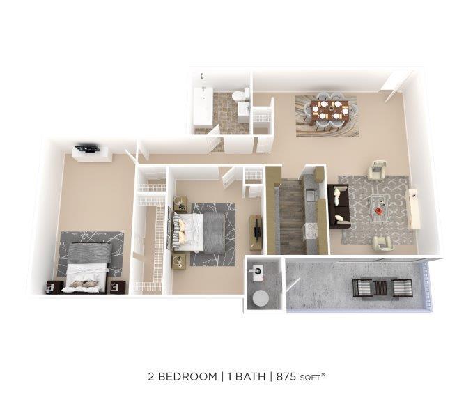 2 Beds, 1 Bath, 725-890 sq ftAvailable NowModel Gallery