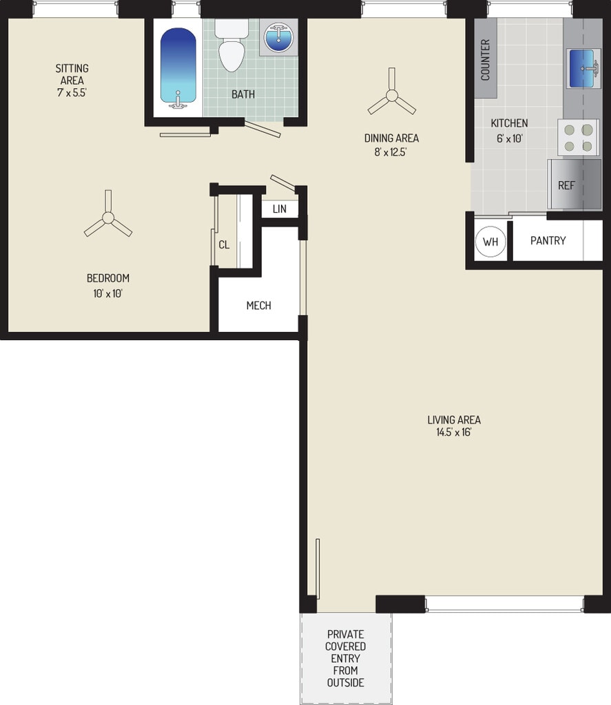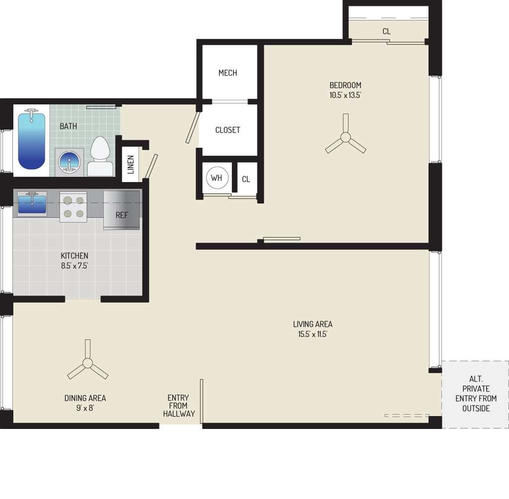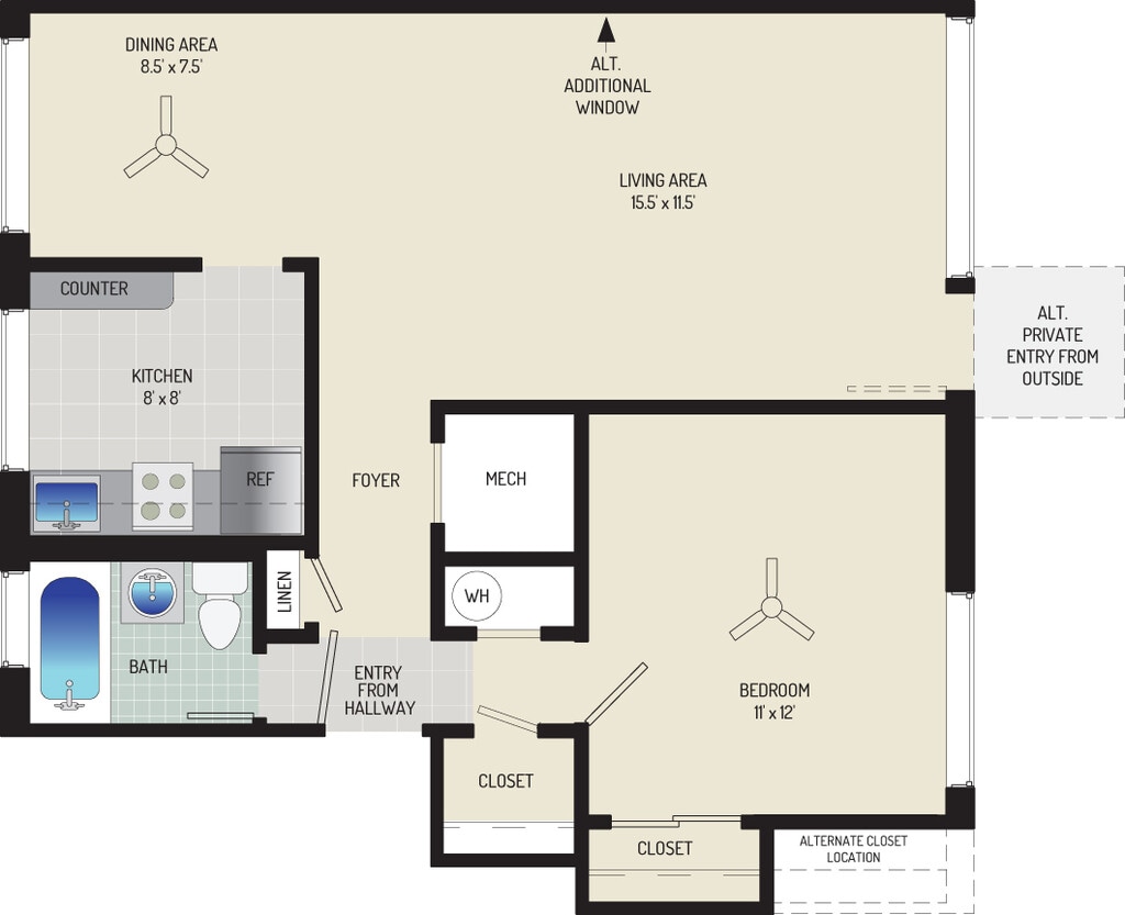 Studio, 1 Bath, 450-525 sq ftModel Gallery