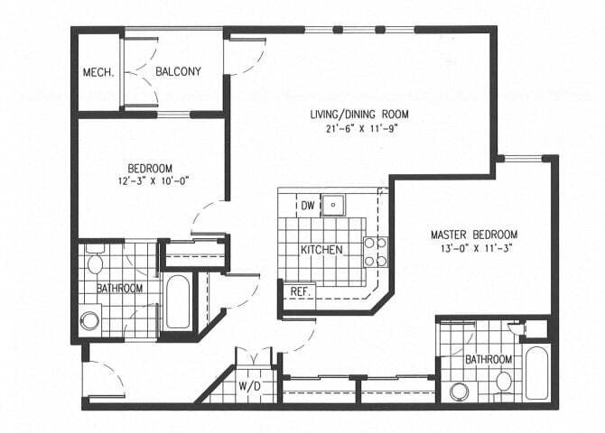 2 Beds, 2 Baths, 1100 sq ftLargest 2 BedroomThis is the largest 2 Bedroom at this PropertyModel Gallery