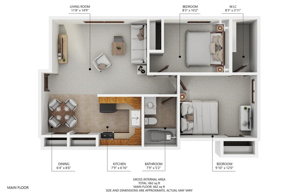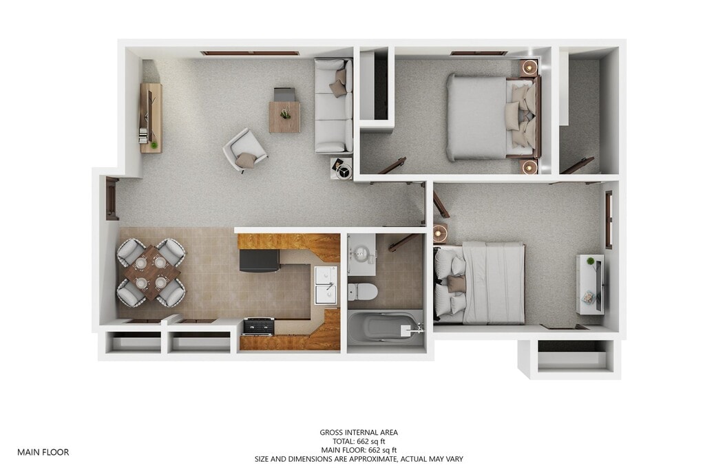 2 Beds, 1 Bath, 750 sq ftAvailable NowModel Gallery