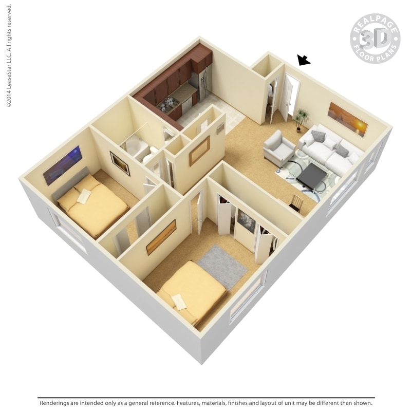 2 Beds, 1 Bath, 720 sq ftModel Gallery