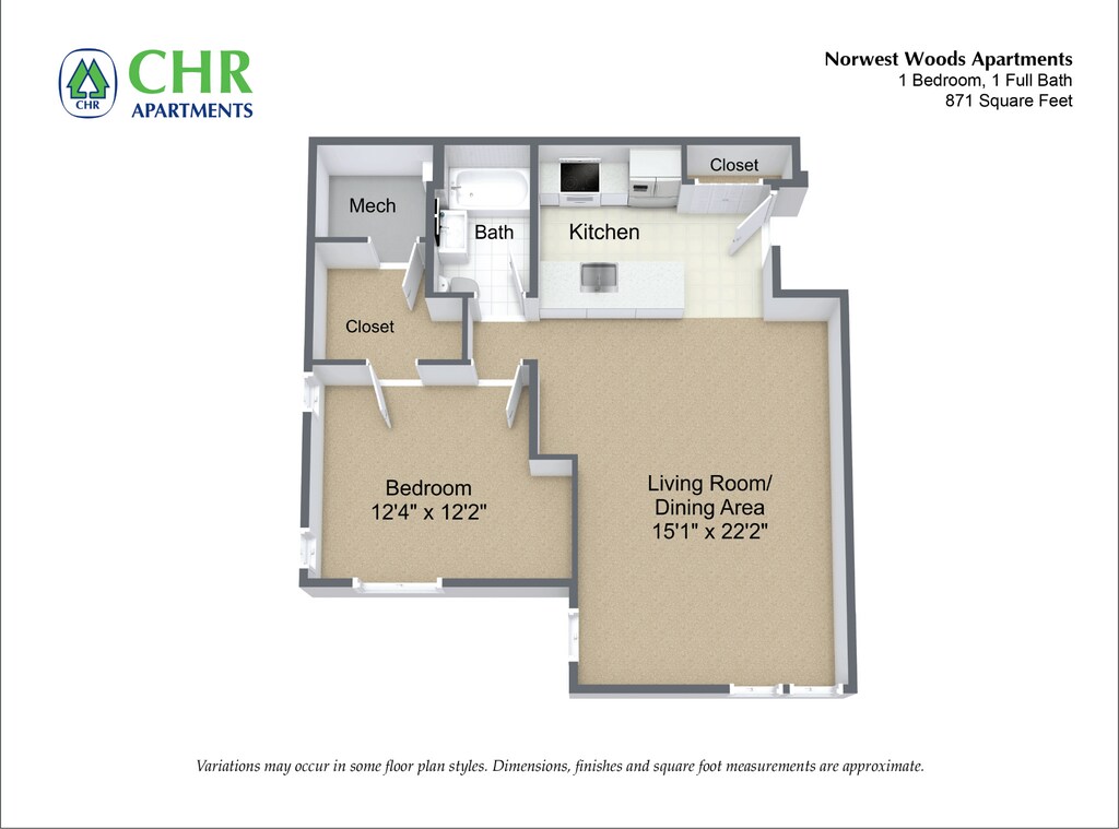 1 Bed, 1 Bath, 1003-1200 sq ftPlus FeesAvailable NowLargest 1 BedroomThis is the largest 1 Bedroom at this PropertyModel Gallery