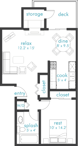 2 Beds, 1 Bath, 850 sq ftAvailable NowModel Gallery
