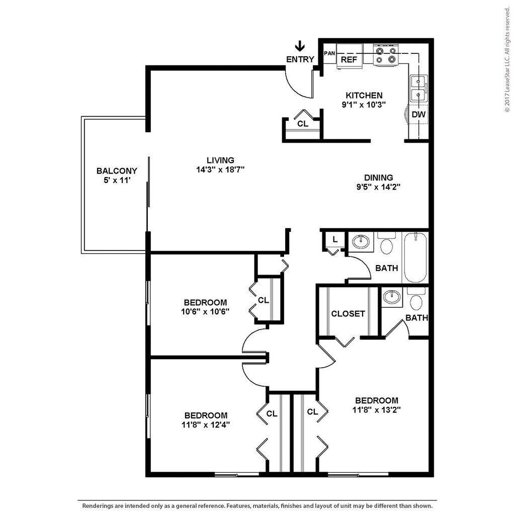 1 Bedroom to 3 Bedroom Apartments at Nottingham Place Apartments currently range from $785 to $1,185