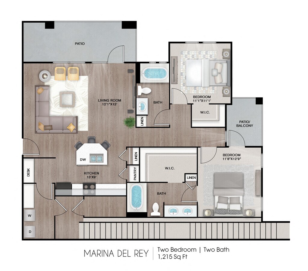 2 Beds, 2 Baths, 1215 sq ftAvailable NowLargest 2 BedroomThis is the largest 2 Bedroom at this PropertyModel Gallery