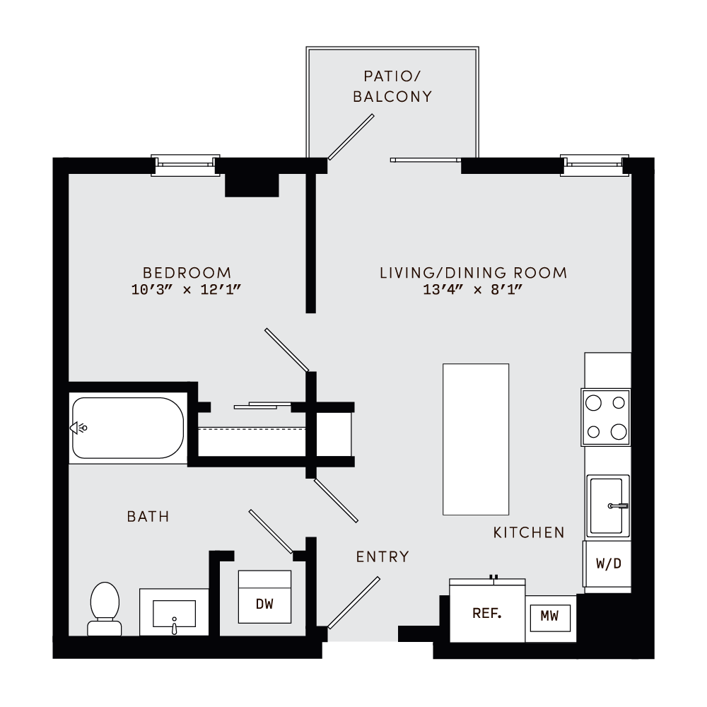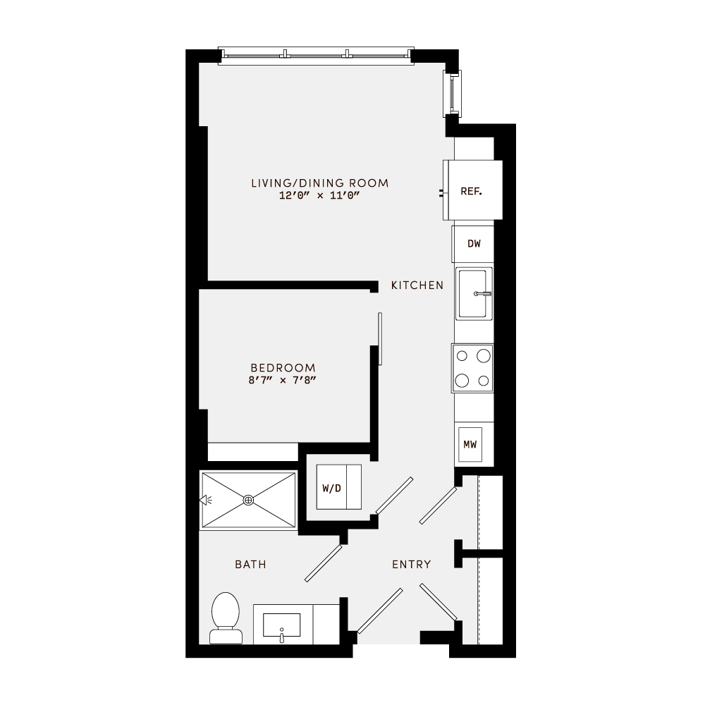 Studio, 1 Bath, 444 sq ftAvailable NowModel Gallery