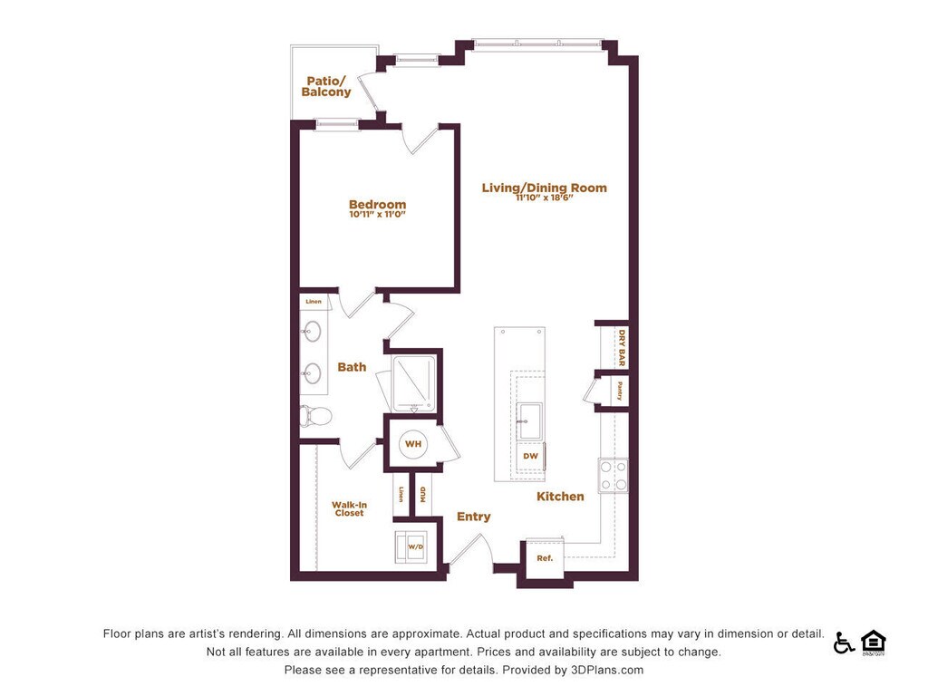 Studio, 1 Bath, 561 sq ftAvailability Details
