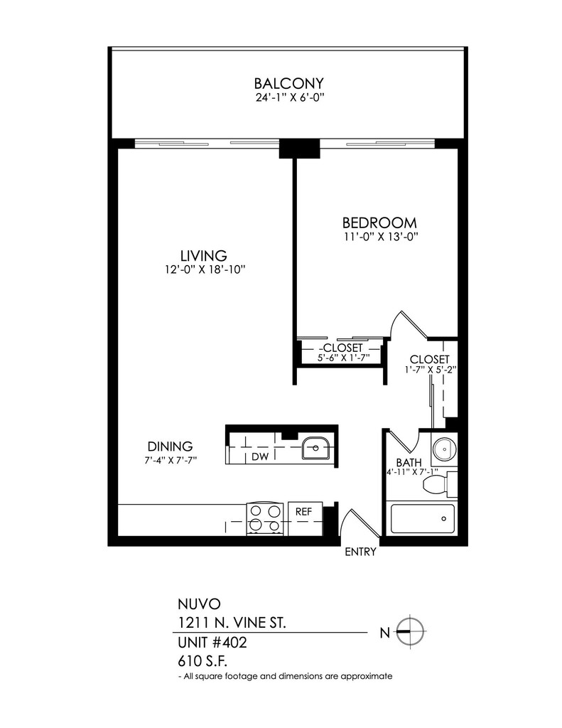 1 Bed 1 Bath - Floorplan 7 Floor plans are artist's rendering. All dimensions are approximate. Actual product and specifications may vary in dimension or detail. Not all features are available in every rental home. Please see a representative for details.