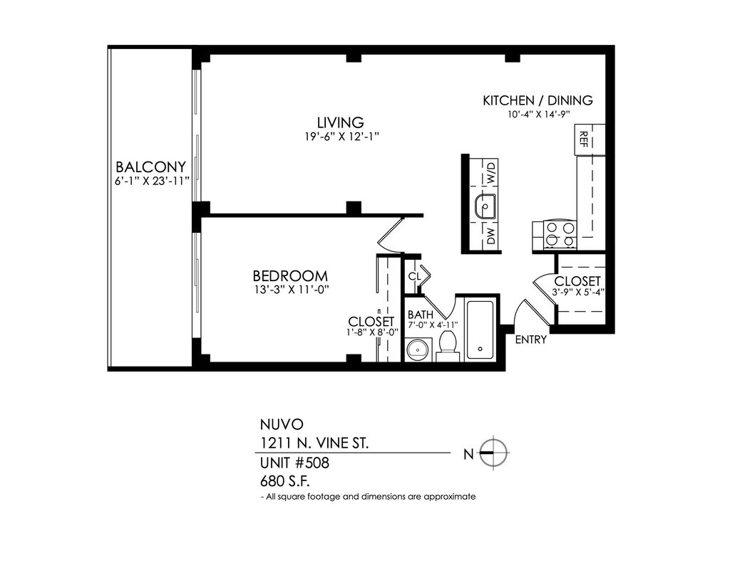 Apartment Model: 1 Bed 1 BathFrom $1,6751 Bedroom, 1 Bath, 610-680 sq ftUnavailableFloor plans are artist's rendering. All dimensions are approximate. Actual product and specifications may vary in dimension or detail. Not all features are available in every rental home. Please see a representative for details.