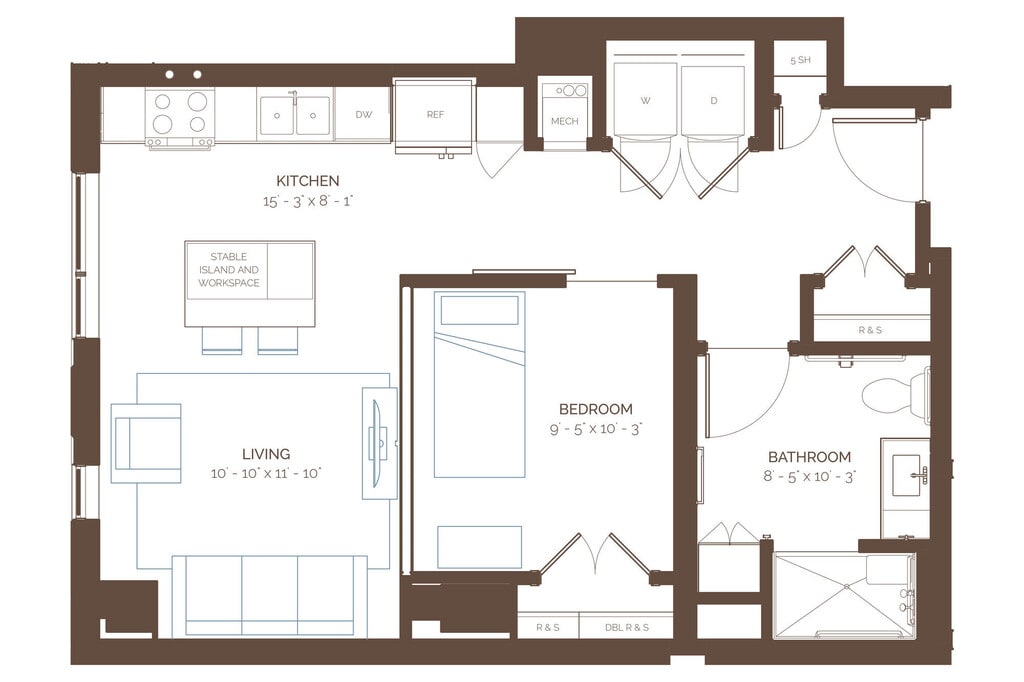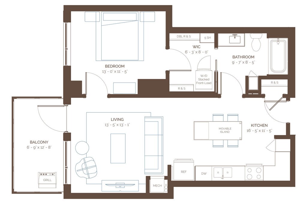 1 Bed, 1 Bath, 697 sq ftPlus FeesAvailable NowModel Gallery