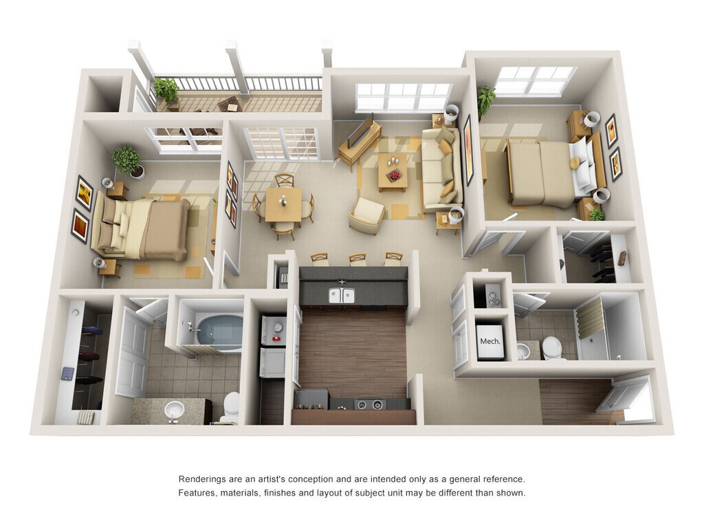 2 Beds, 2 Baths, 1198 sq ftAvailable NowModel Gallery