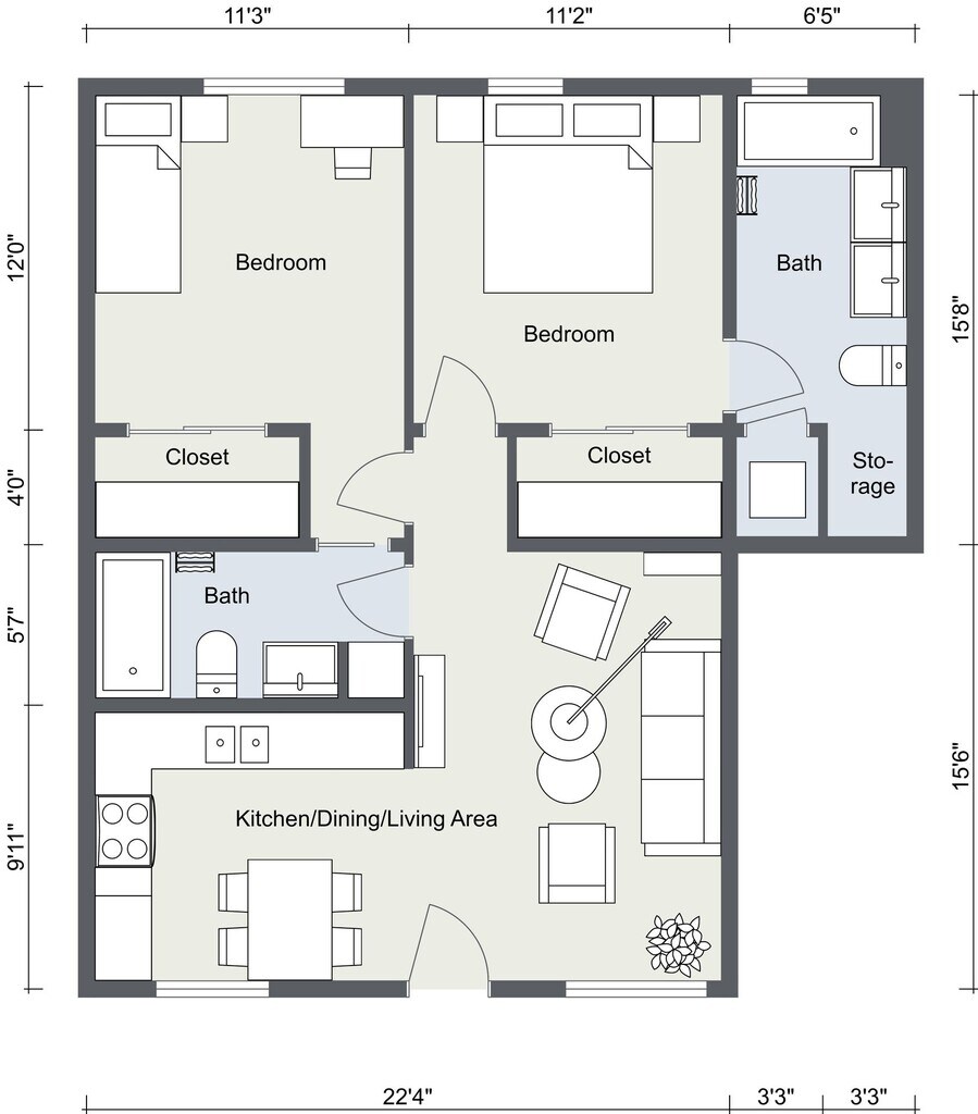 2 Bedroom (820 SF) - Downstairs - Image 5 ![]()