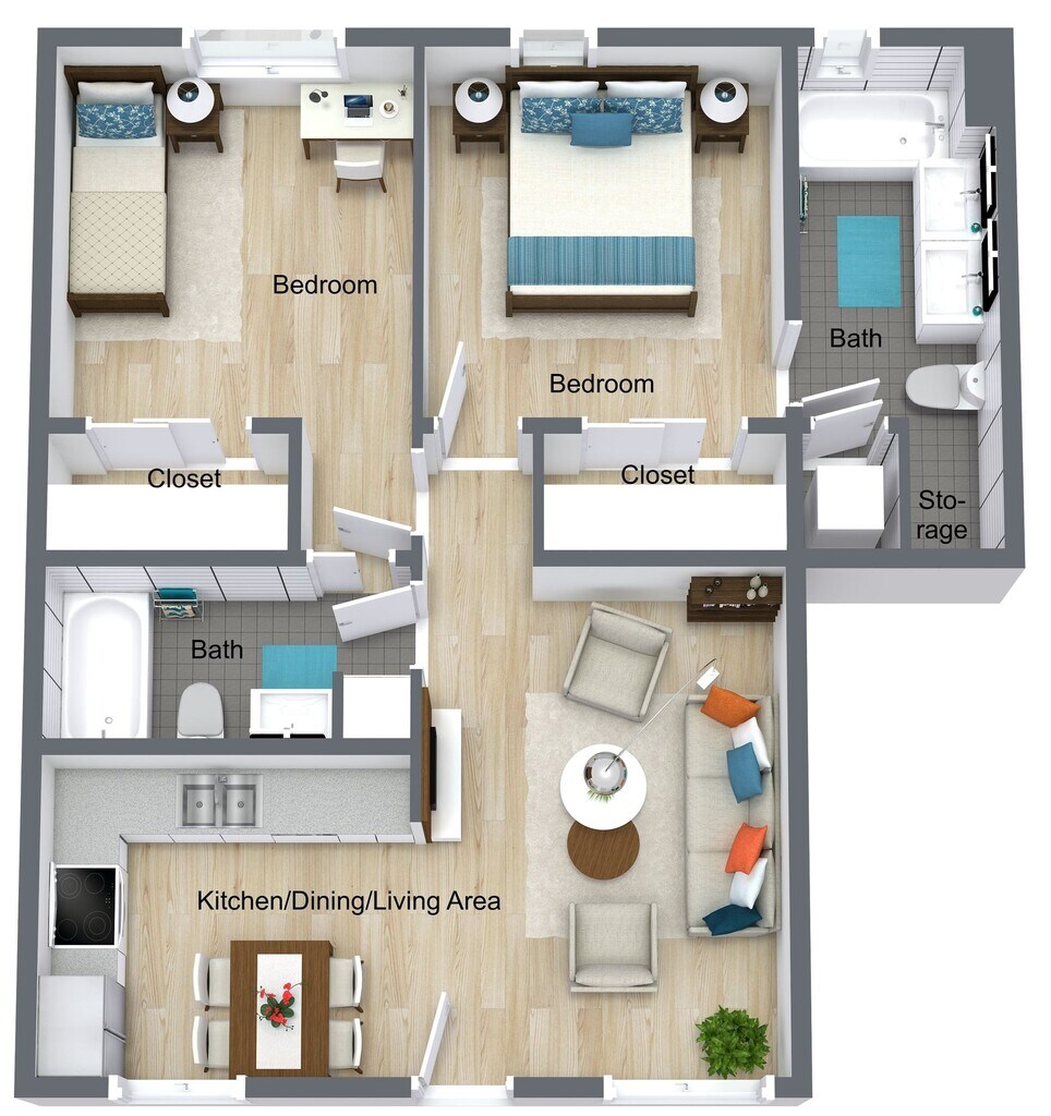 2 Beds, 2 Baths, 820 sq ftAvailable NowModel Gallery