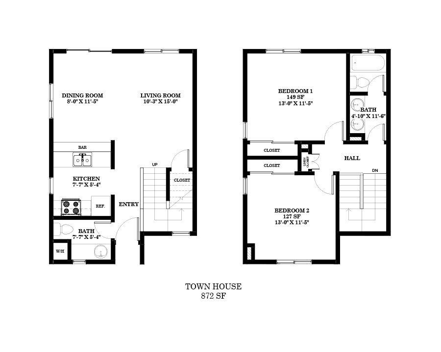 Apartment Model: 2 Beds, 1.5 baths2 Bedroom, 1.5 Bath, 872 sq ftUnavailable2 Beds, 1.5 baths - Floorplan 1